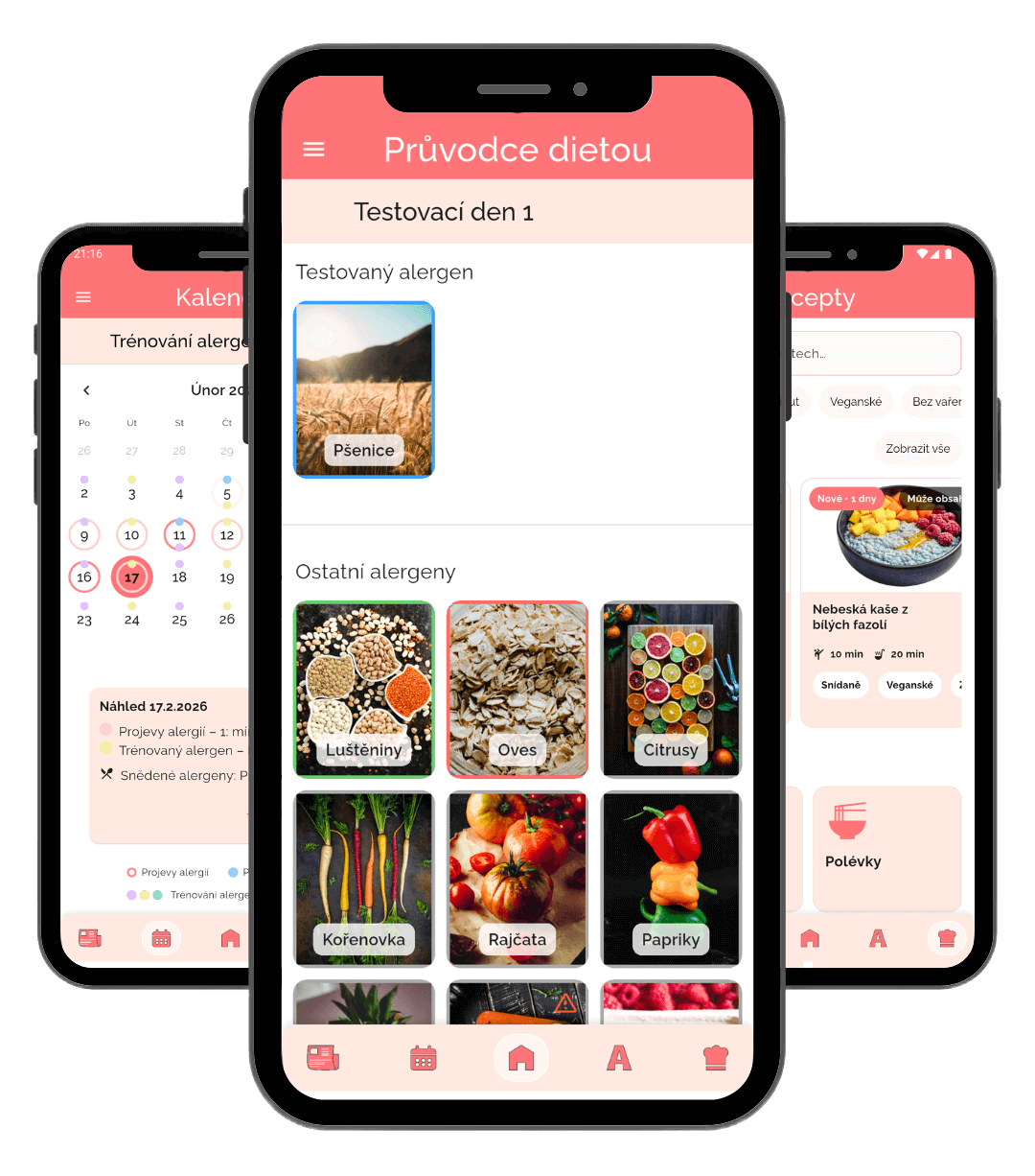 Vše důležité na jednom místě: záznamy, průvodce, alergeny i recepty.